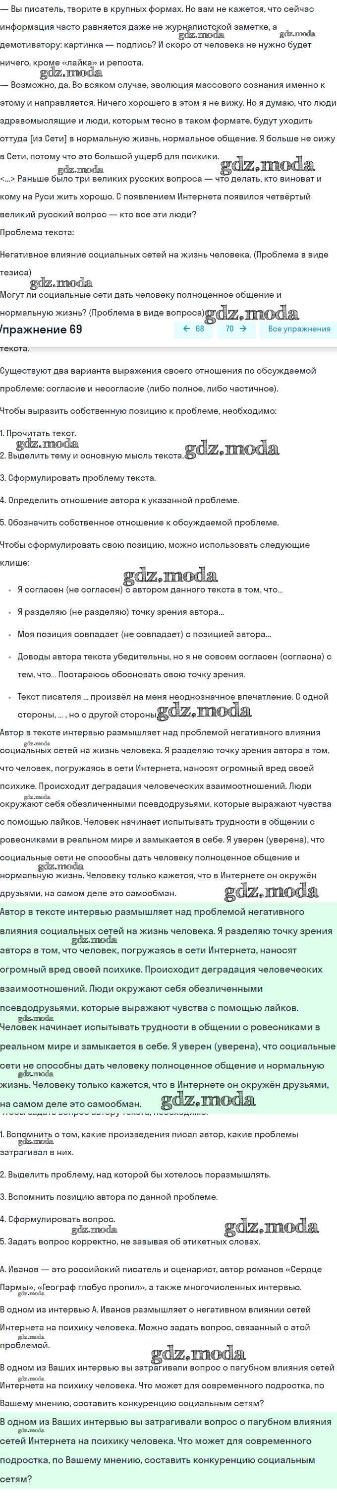 ОТВЕТ на задание № 69 Учебник по Русскому языку 8 класс Рыбченкова