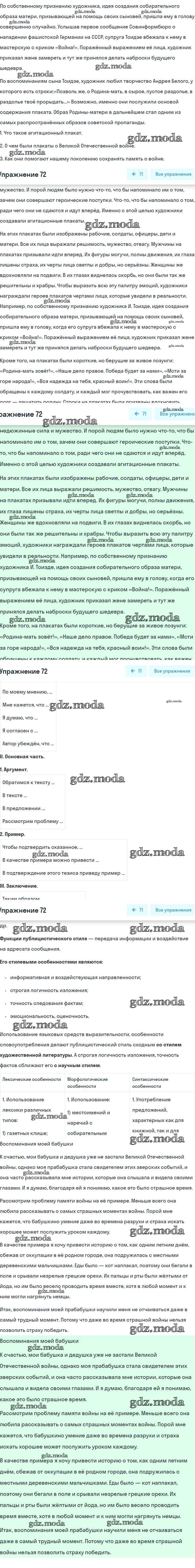ОТВЕТ на задание № 72 Учебник по Русскому языку 8 класс Рыбченкова