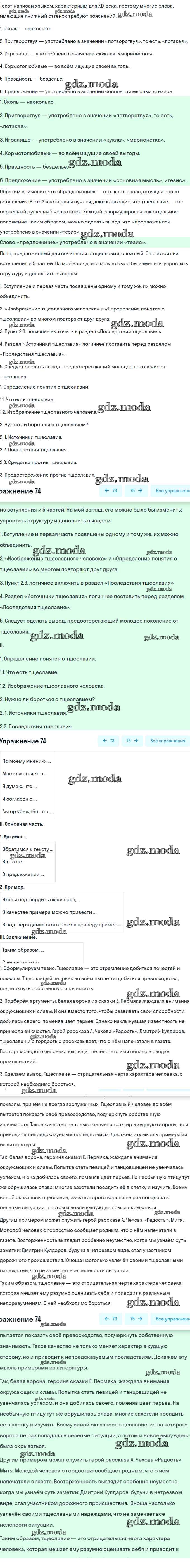 ОТВЕТ на задание № 74 Учебник по Русскому языку 8 класс Рыбченкова