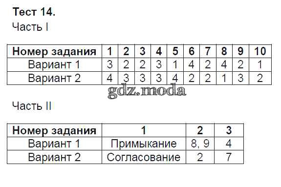 ГДЗ решение к заданию № Тест-14 Русский язык 8 класс Тесты Селезнева Е.В. (к уч. Тростенцовой) Экзамен 2020 ФГОС бесплатно на гдз.мода!