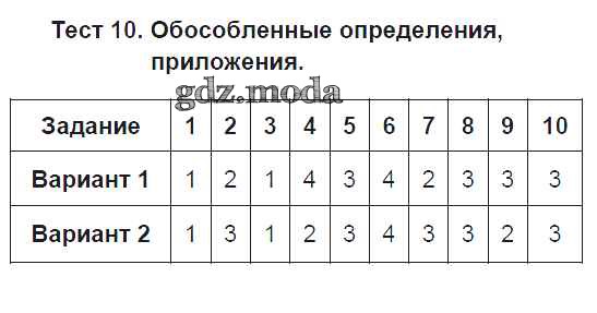 ОТВЕТ на задание № Тест №10. Обособленные определения, приложения Тесты по Русскому языку 8 класс Селезнева УМК