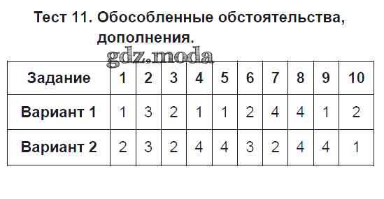 ОТВЕТ на задание № Тест №11. Обособленные обстоятельства, дополнения Тесты по Русскому языку 8 класс Селезнева УМК