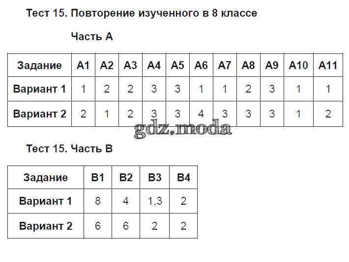 ГДЗ решение к заданию № Тест №15. Повторение изученного в 8 классе Русский язык 8 класс Тесты Селезнева Е.В. (к уч. Бунеева) Экзамен 2014 ФГОС бесплатно на гдз.мода!