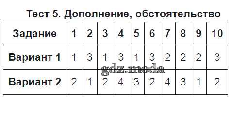 ГДЗ решение к заданию № Тест №5. Дополнение, обстоятельство Русский язык 8 класс Тесты Селезнева Е.В. (к уч. Бунеева) Экзамен 2014 ФГОС бесплатно на гдз.мода!