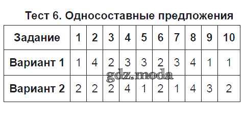 ГДЗ решение к заданию № Тест №6. Односоставные предложения Русский язык 8 класс Тесты Селезнева Е.В. (к уч. Бунеева) Экзамен 2014 ФГОС бесплатно на гдз.мода!