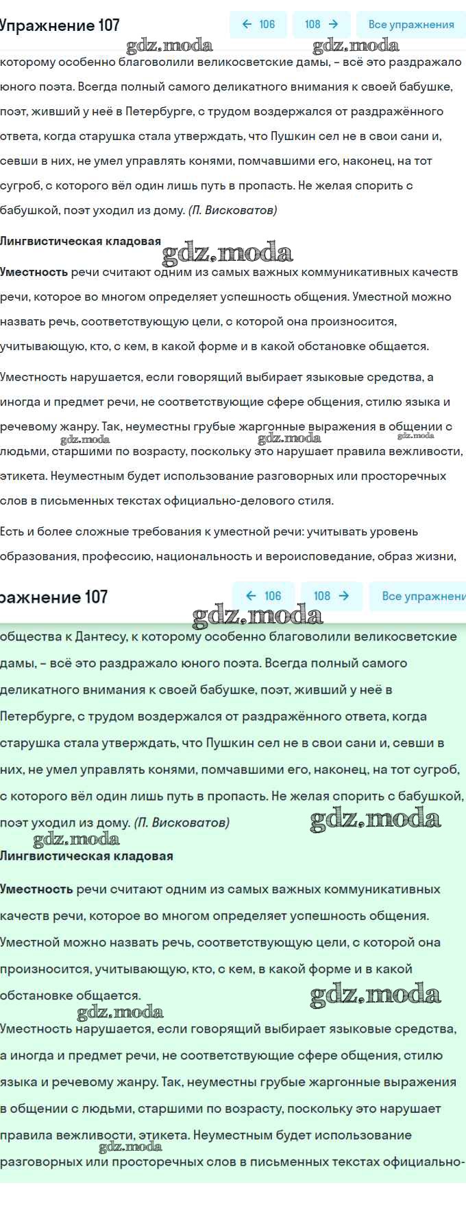ГДЗ решение к заданию № 107 Русский язык 8 класс Шмелёв А.Д. Вентана-граф 2019 ФГОС бесплатно на гдз.мода!