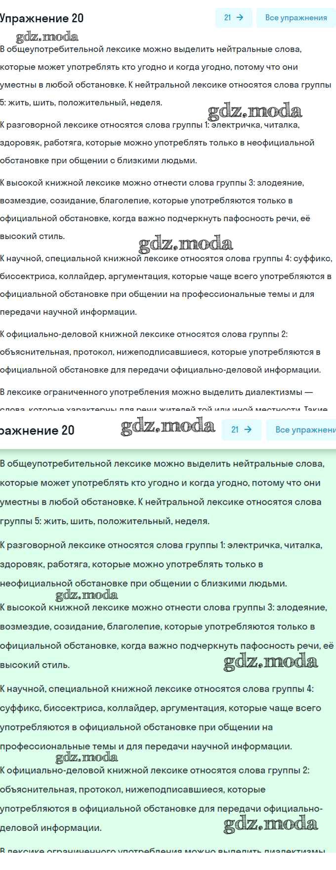 ГДЗ решение к заданию № 20 Русский язык 8 класс Шмелёв А.Д. Вентана-граф 2019 ФГОС бесплатно на гдз.мода!