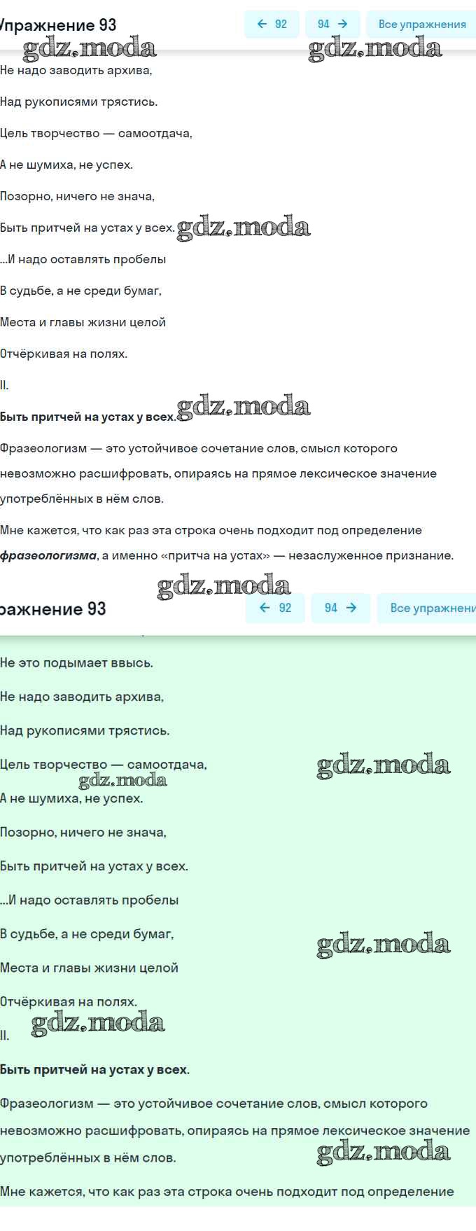 ОТВЕТ на задание № 93 Учебник по Русскому языку 8 класс Шмелёв Алгоритм успеха
