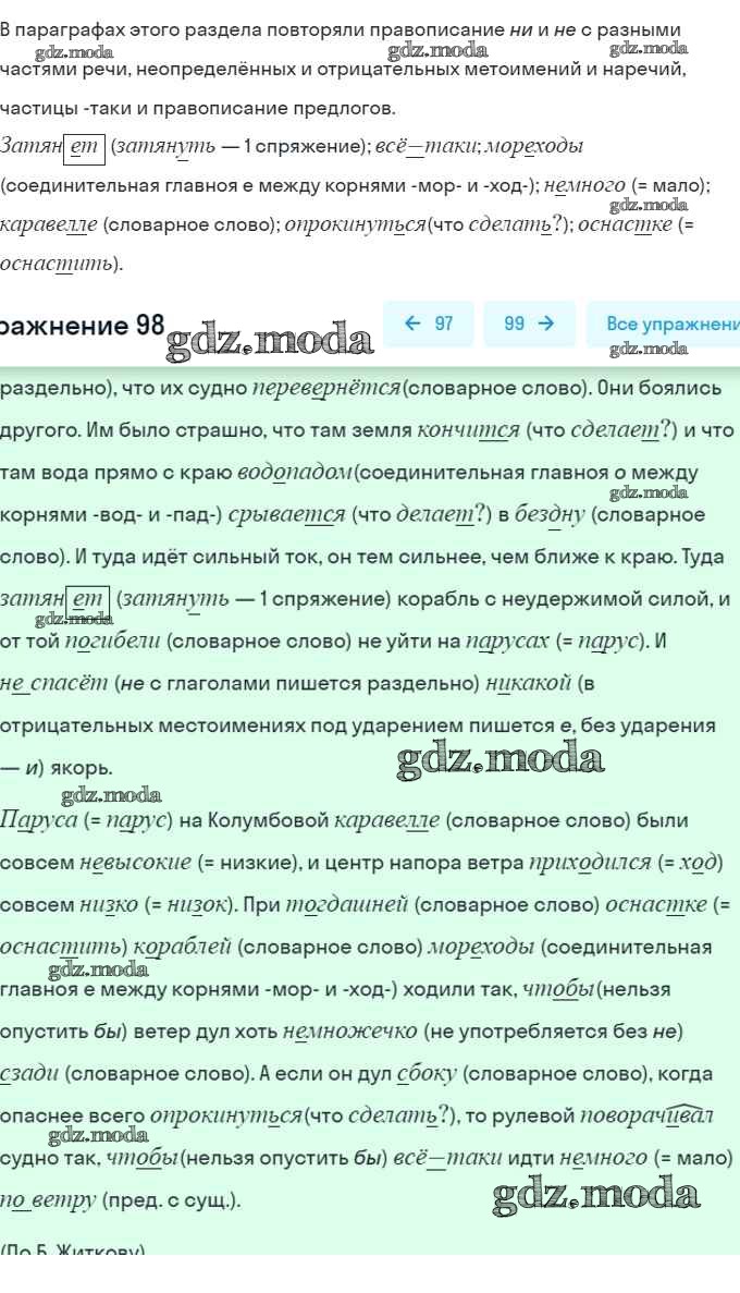ОТВЕТ на задание № 98 Учебник по Русскому языку 8 класс Шмелёв Алгоритм успеха