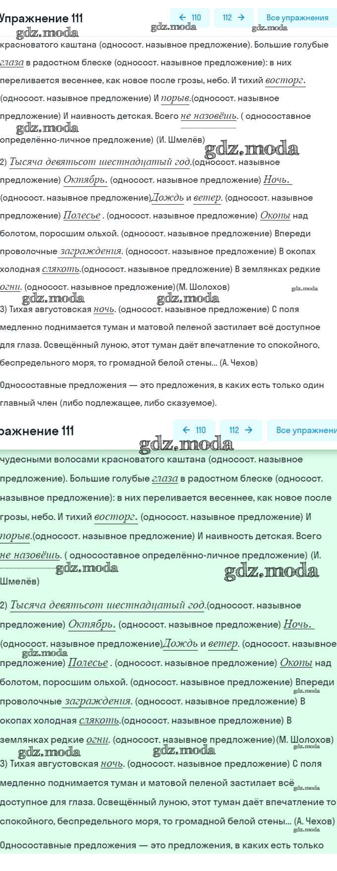 ОТВЕТ на задание № 111 Учебник по Русскому языку 8 класс Шмелёв Алгоритм успеха