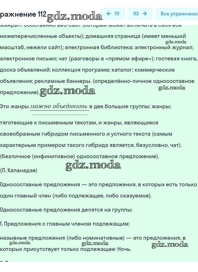 ГДЗ решение к заданию № 112 Русский язык 8 класс Шмелёв А.Д. Вентана-граф 2019 ФГОС бесплатно на гдз.мода!