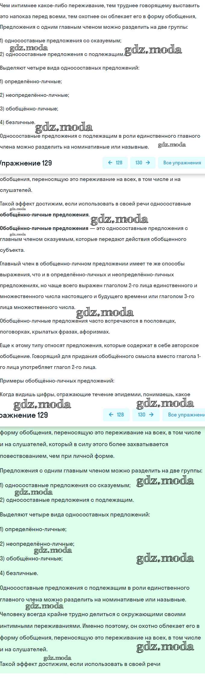 ГДЗ решение к заданию № 129 Русский язык 8 класс Шмелёв А.Д. Вентана-граф 2019 ФГОС бесплатно на гдз.мода!