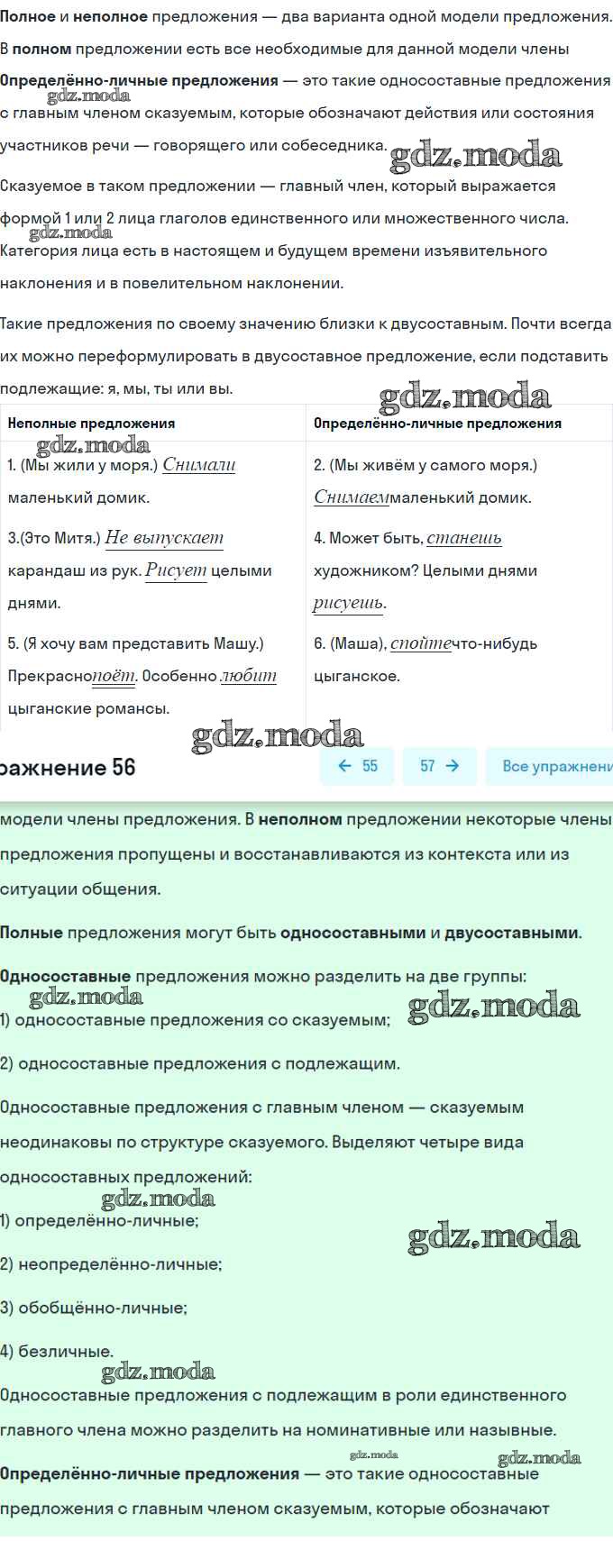 ГДЗ решение к заданию № 56 Русский язык 8 класс Шмелёв А.Д. Вентана-граф 2019 ФГОС бесплатно на гдз.мода!