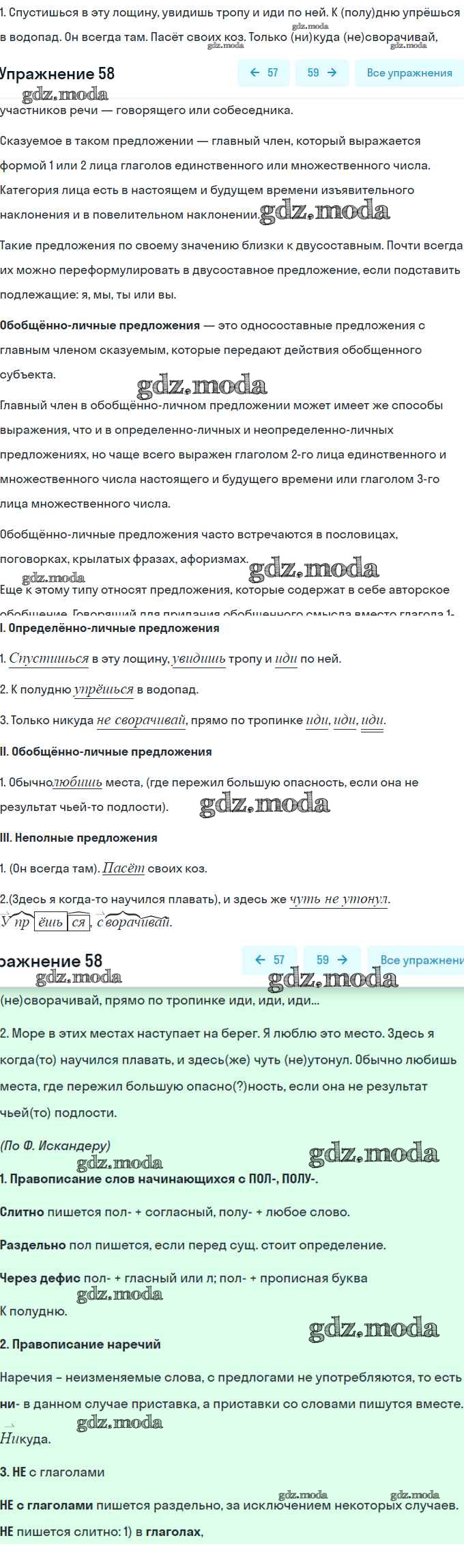 ГДЗ решение к заданию № 58 Русский язык 8 класс Шмелёв А.Д. Вентана-граф 2019 ФГОС бесплатно на гдз.мода!