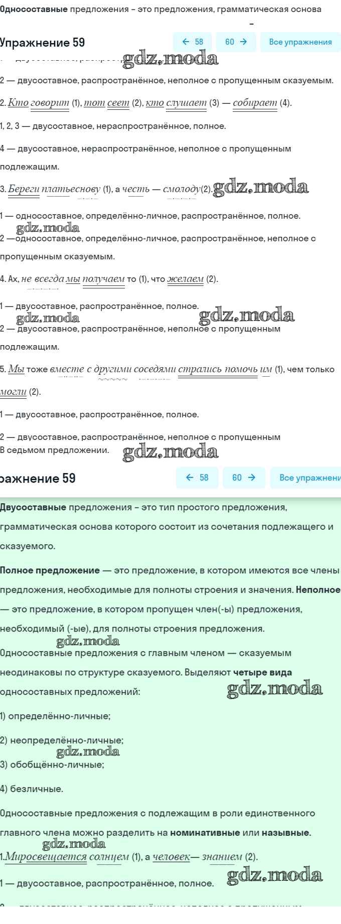 ГДЗ решение к заданию № 59 Русский язык 8 класс Шмелёв А.Д. Вентана-граф 2019 ФГОС бесплатно на гдз.мода!