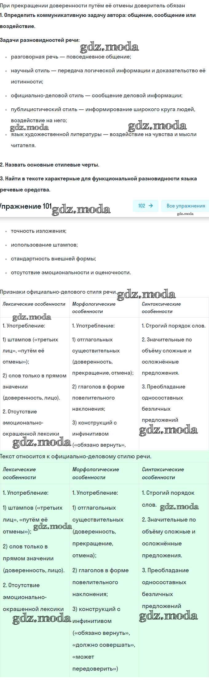 ОТВЕТ на задание № 101 Учебник по Русскому языку 8 класс Шмелёв Алгоритм успеха