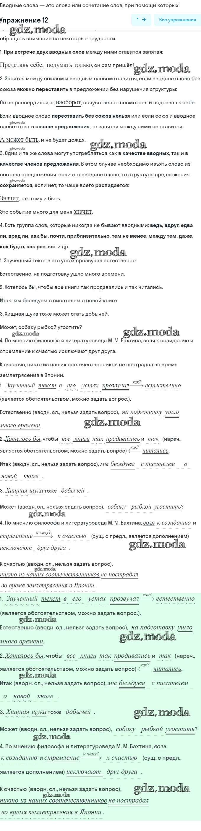ГДЗ решение к заданию № 12 Русский язык 8 класс Шмелёв А.Д. Вентана-граф 2019 ФГОС бесплатно на гдз.мода!
