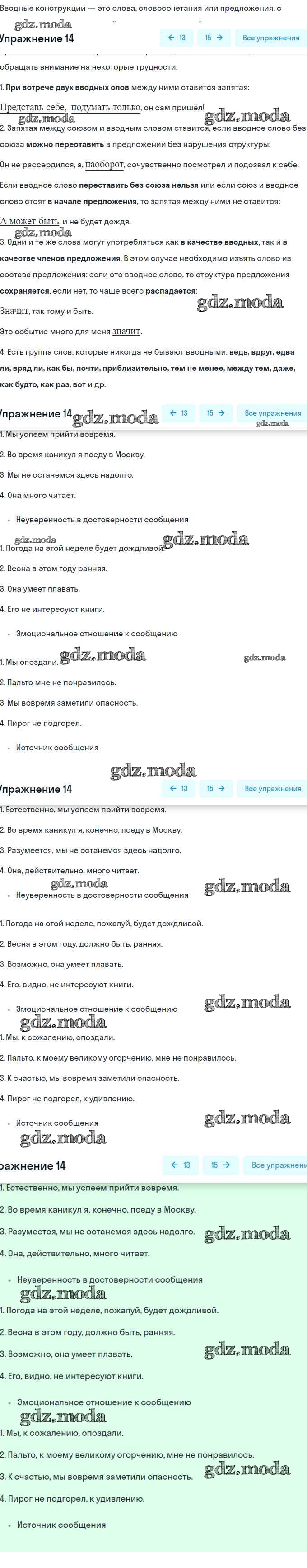 ГДЗ решение к заданию № 14 Русский язык 8 класс Шмелёв А.Д. Вентана-граф 2019 ФГОС бесплатно на гдз.мода!