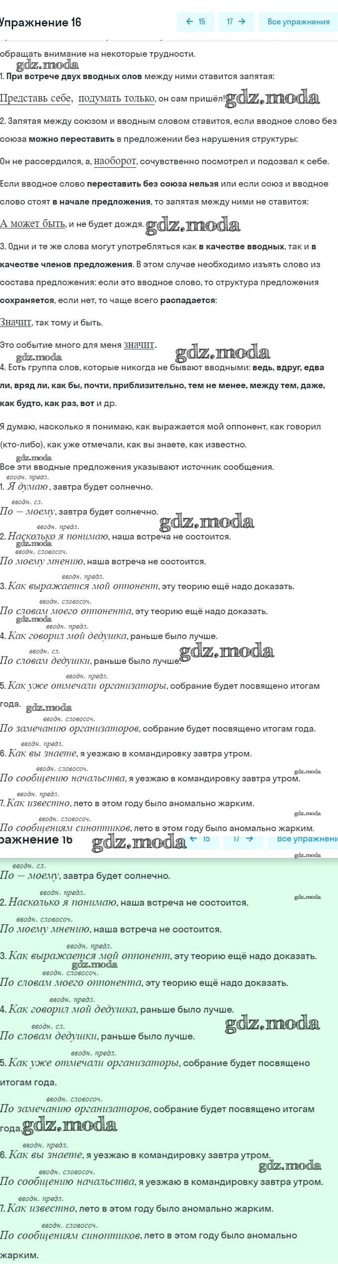 ГДЗ решение к заданию № 16 Русский язык 8 класс Шмелёв А.Д. Вентана-граф 2019 ФГОС бесплатно на гдз.мода!