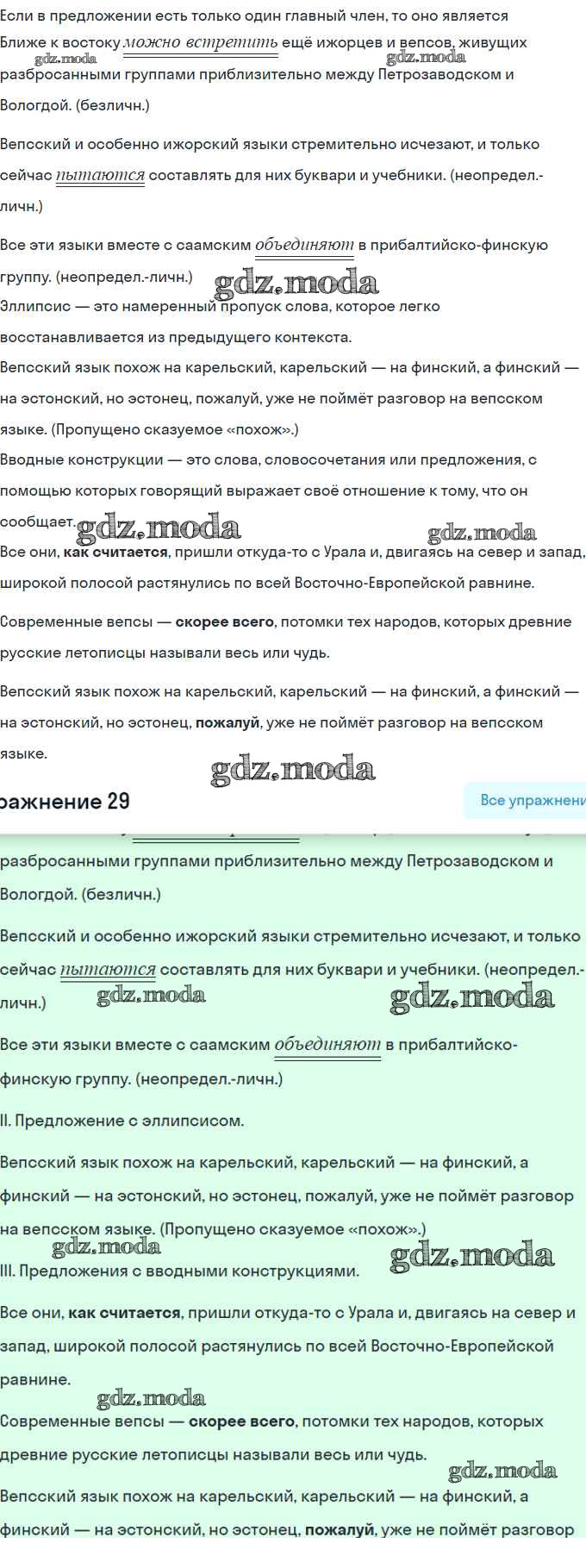 ГДЗ решение к заданию № 29 Русский язык 8 класс Шмелёв А.Д. Вентана-граф 2019 ФГОС бесплатно на гдз.мода!