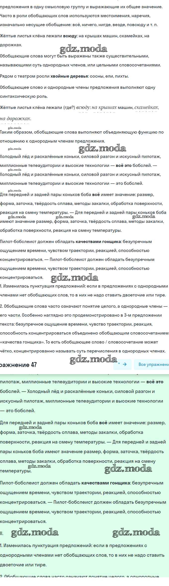 ГДЗ решение к заданию № 47 Русский язык 8 класс Шмелёв А.Д. Вентана-граф 2019 ФГОС бесплатно на гдз.мода!