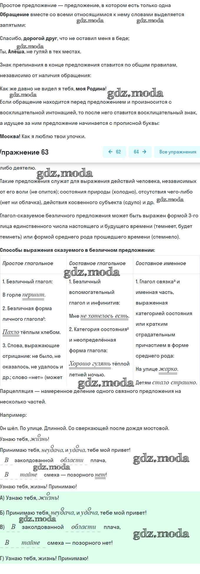 ГДЗ решение к заданию № 63 Русский язык 8 класс Шмелёв А.Д. Вентана-граф 2019 ФГОС бесплатно на гдз.мода!