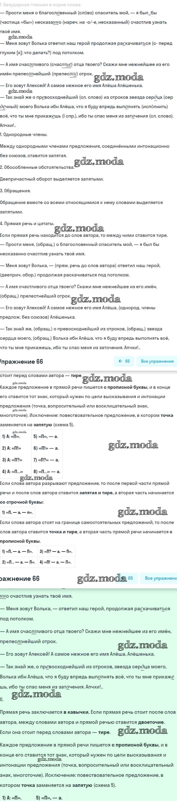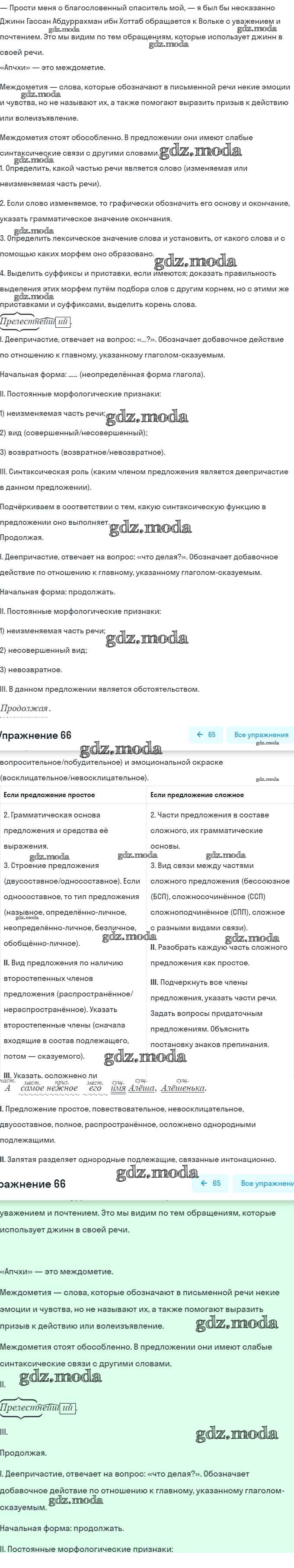 ГДЗ решение к заданию № 66 Русский язык 8 класс Шмелёв А.Д. Вентана-граф 2019 ФГОС бесплатно на гдз.мода!