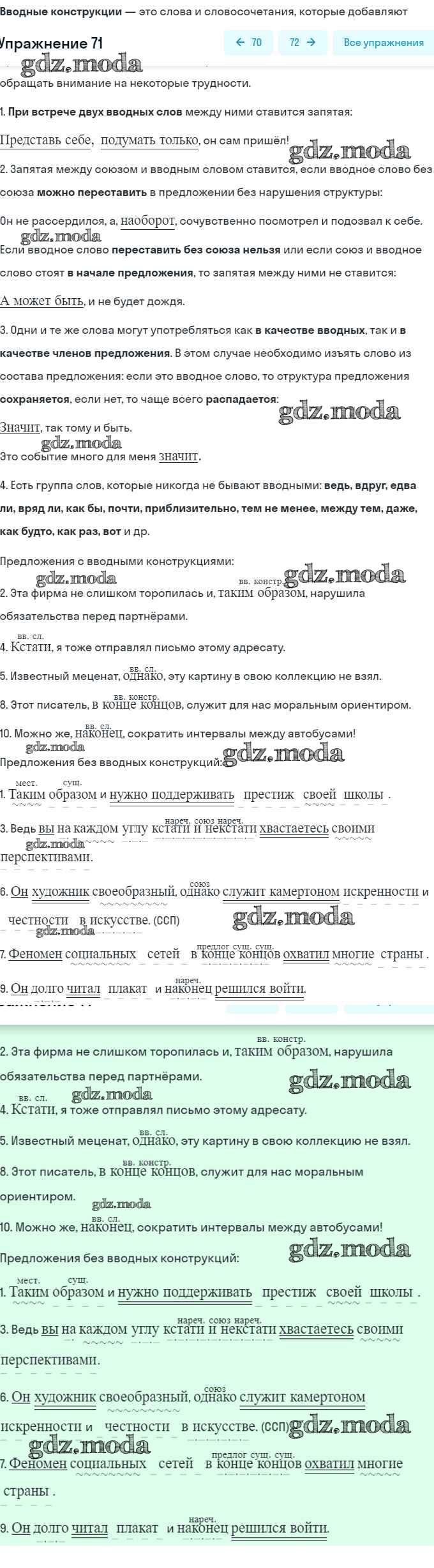 ОТВЕТ на задание № 71 Учебник по Русскому языку 8 класс Шмелёв Алгоритм успеха