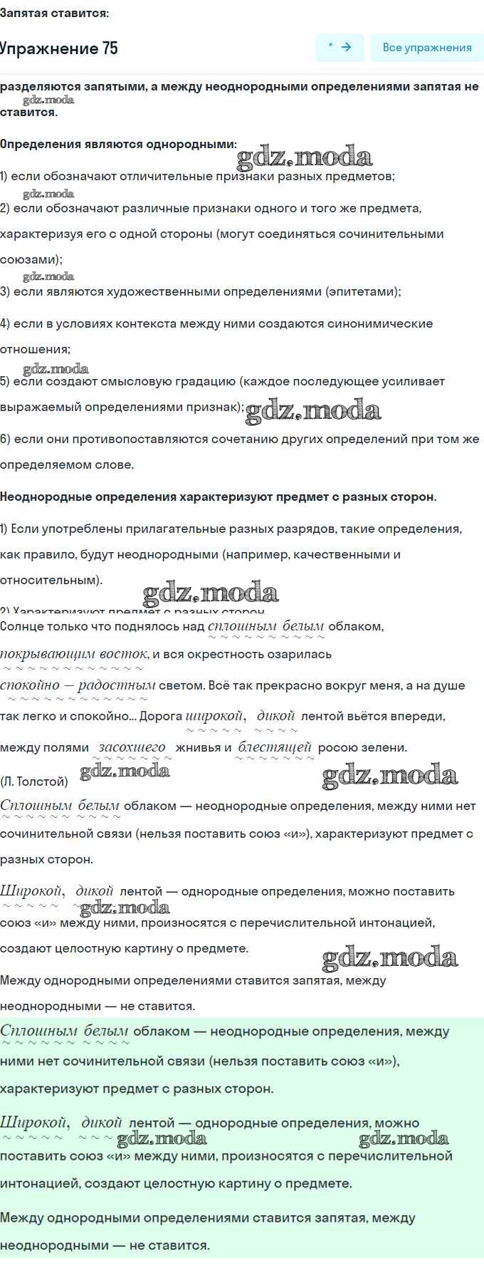 ОТВЕТ на задание № 75 Учебник по Русскому языку 8 класс Шмелёв Алгоритм успеха