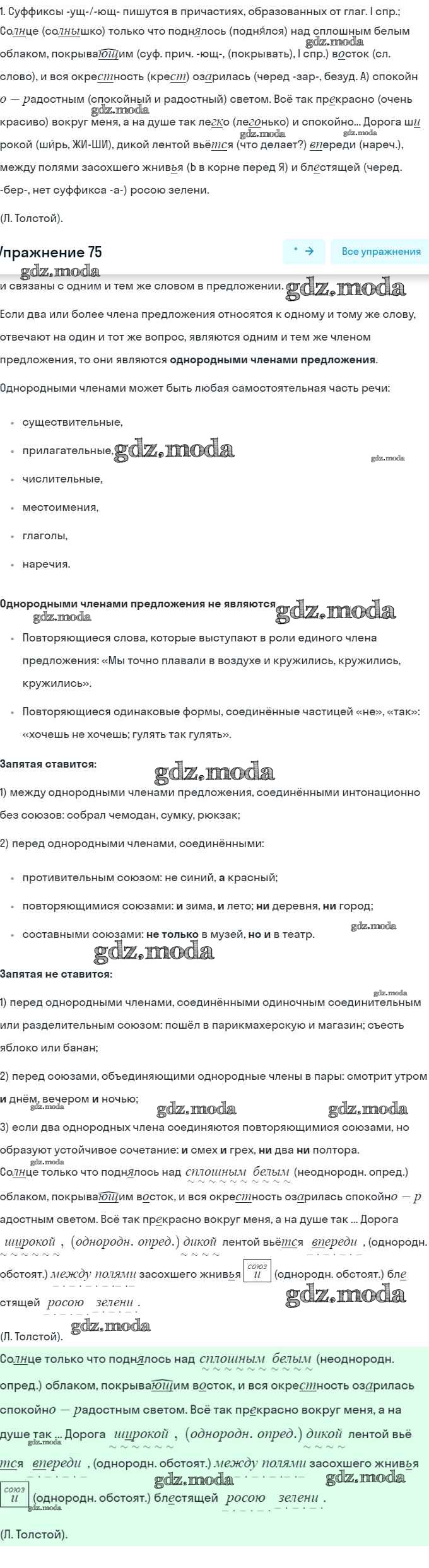ГДЗ решение к заданию № 75 Русский язык 8 класс Шмелёв А.Д. Вентана-граф 2019 ФГОС бесплатно на гдз.мода!