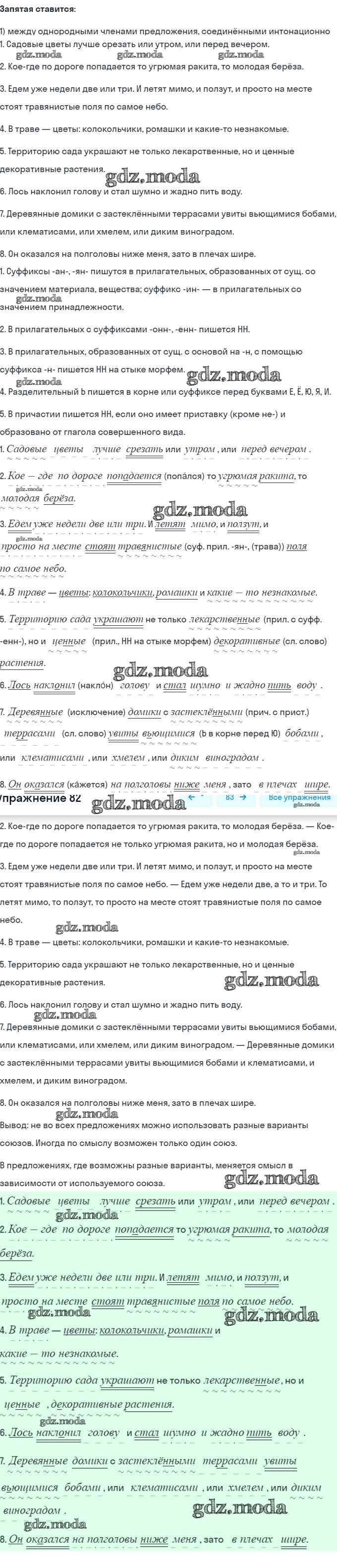 ОТВЕТ на задание № 82 Учебник по Русскому языку 8 класс Шмелёв Алгоритм успеха