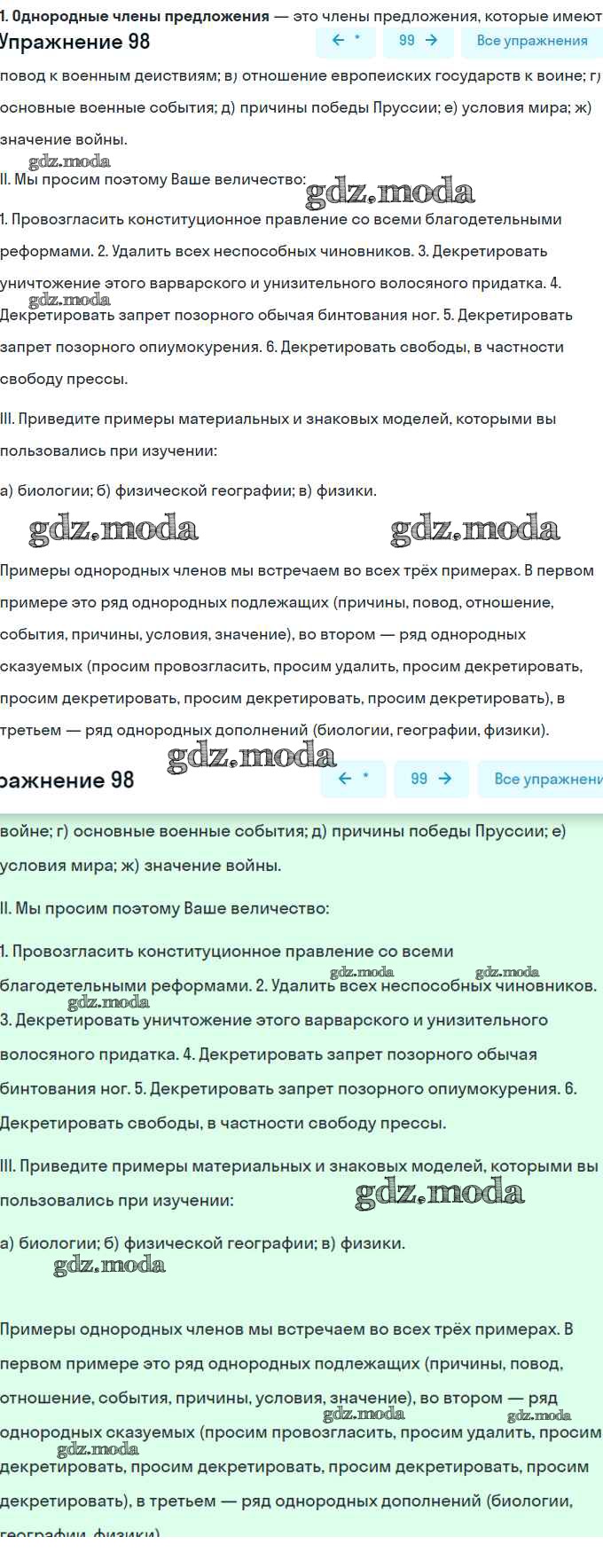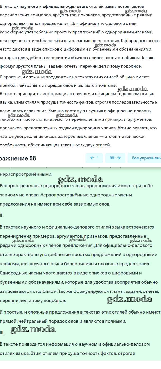 ОТВЕТ на задание № 98 Учебник по Русскому языку 8 класс Шмелёв Алгоритм успеха