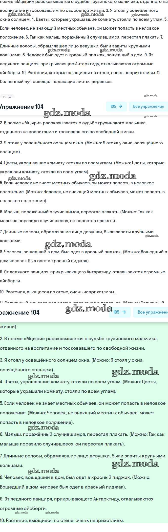 ОТВЕТ на задание № 104 Учебник по Русскому языку 8 класс Шмелёв Алгоритм успеха