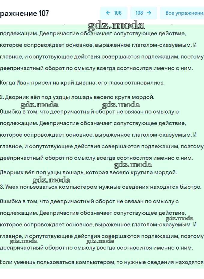 ГДЗ решение к заданию № 107 Русский язык 8 класс Шмелёв А.Д. Вентана-граф 2019 ФГОС бесплатно на гдз.мода!