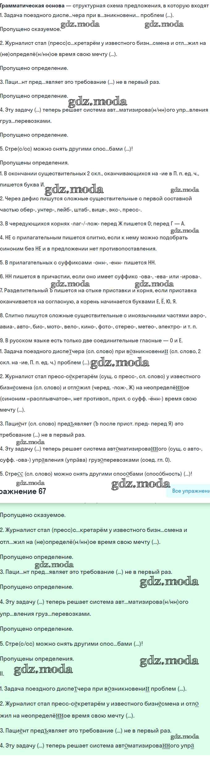 ОТВЕТ на задание № 67 Учебник по Русскому языку 8 класс Шмелёв Алгоритм успеха