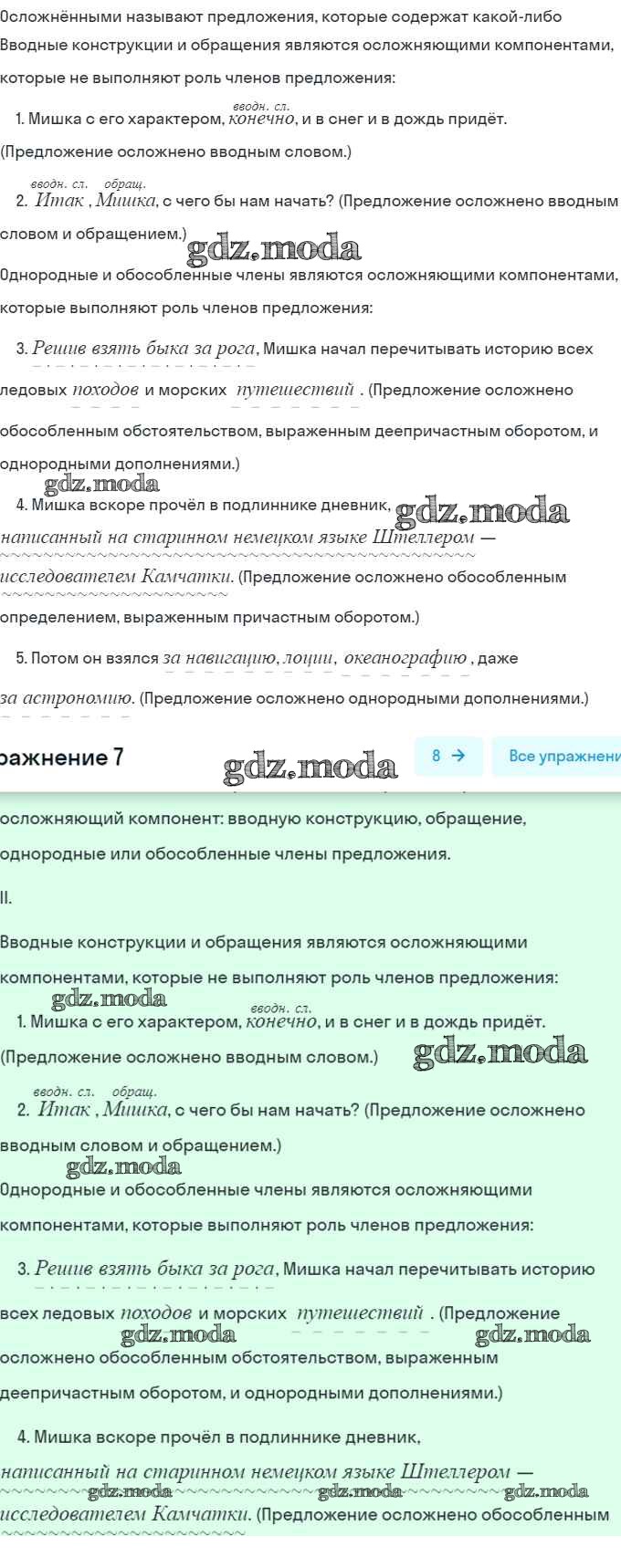 ГДЗ решение к заданию № 7 Русский язык 8 класс Шмелёв А.Д. Вентана-граф 2019 ФГОС бесплатно на гдз.мода!