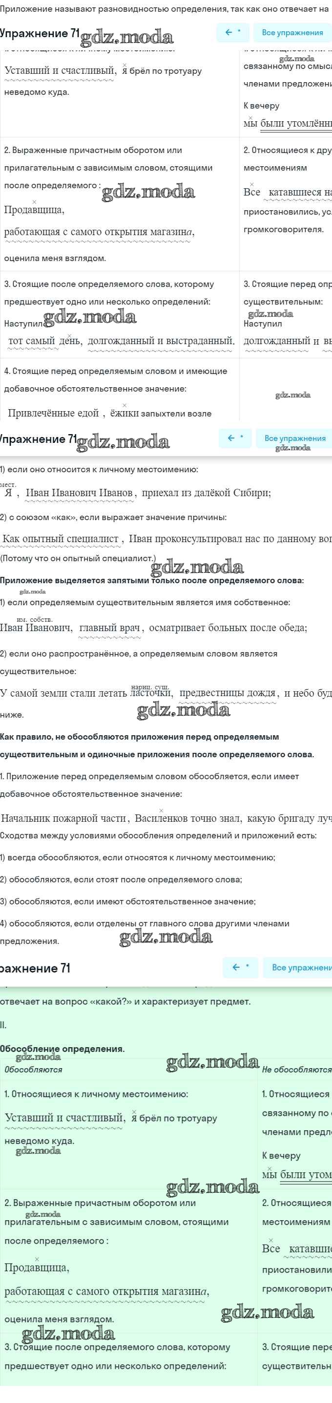 ГДЗ решение к заданию № 71 Русский язык 8 класс Шмелёв А.Д. Вентана-граф 2019 ФГОС бесплатно на гдз.мода!