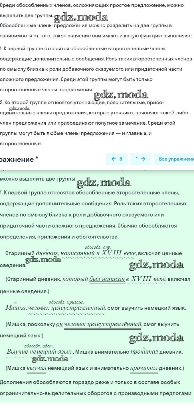 ГДЗ решение к заданию № 8 Русский язык 8 класс Шмелёв А.Д. Вентана-граф 2019 ФГОС бесплатно на гдз.мода!