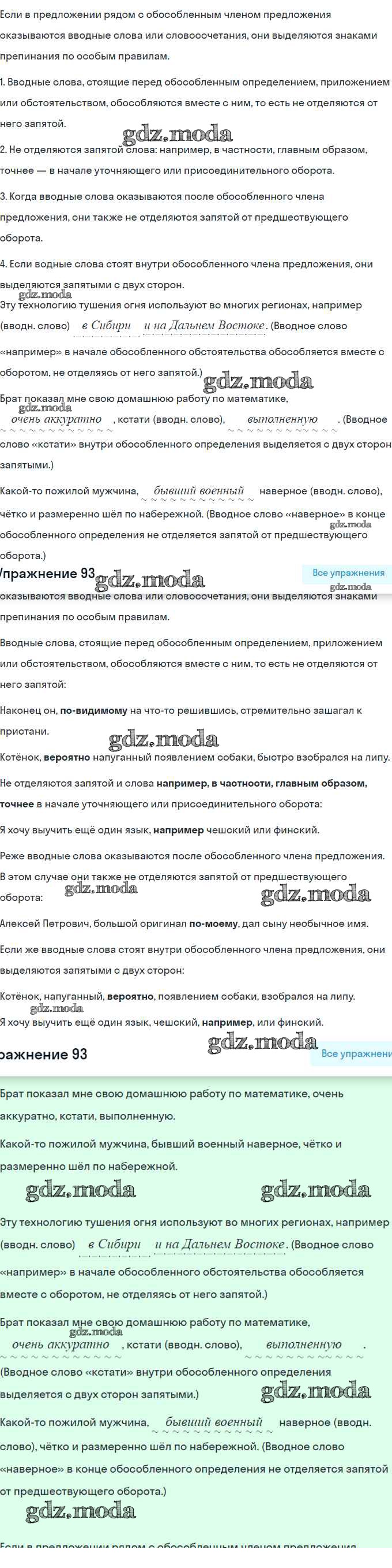 ГДЗ решение к заданию № 93 Русский язык 8 класс Шмелёв А.Д. Вентана-граф 2019 ФГОС бесплатно на гдз.мода!