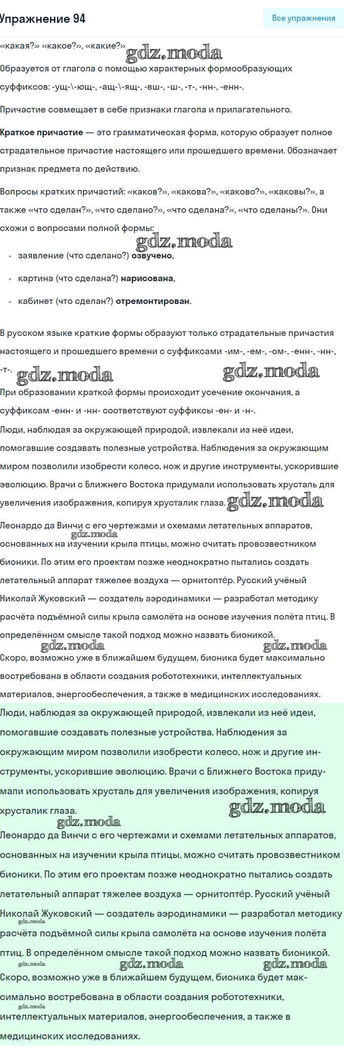 ОТВЕТ на задание № 94 Учебник по Русскому языку 8 класс Шмелёв Алгоритм успеха