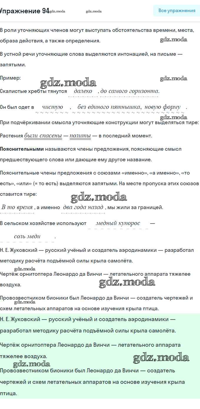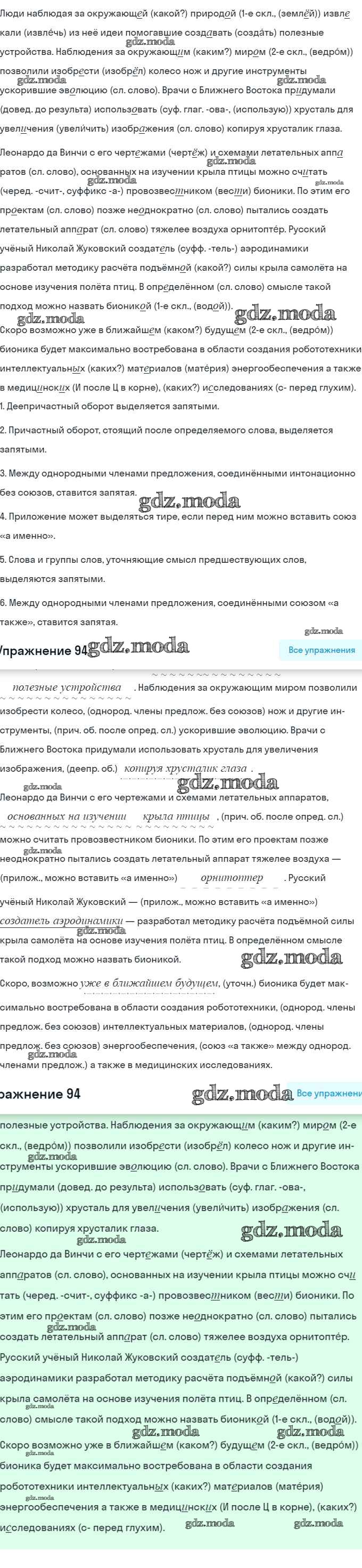 ГДЗ решение к заданию № 94 Русский язык 8 класс Шмелёв А.Д. Вентана-граф 2019 ФГОС бесплатно на гдз.мода!