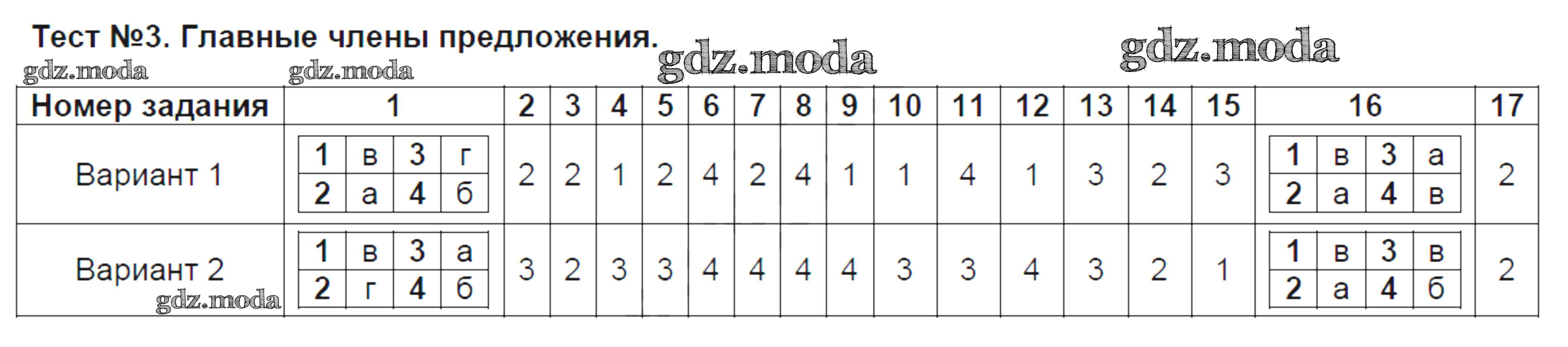 ГДЗ решение к заданию № Тест №3. Главные члены предложения Русский язык 8 класс Тематические тесты Клевцова Л.Ю. Просвещение 2018 ФГОС бесплатно на гдз.мода!
