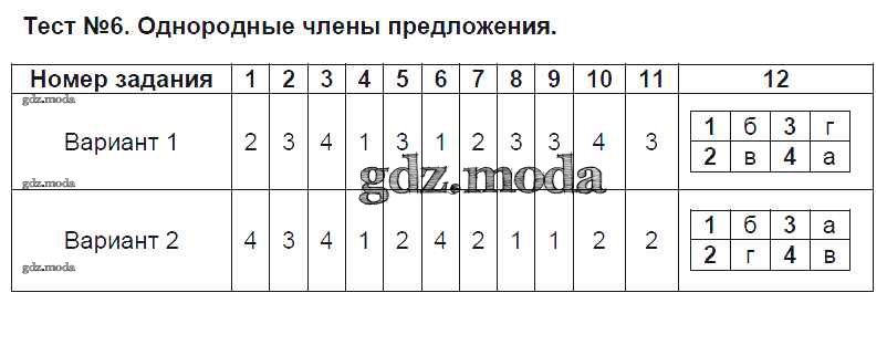 ОТВЕТ на задание № Тест №6. Однородные члены предложения Тематические тесты по Русскому языку 8 класс Клевцова УМК