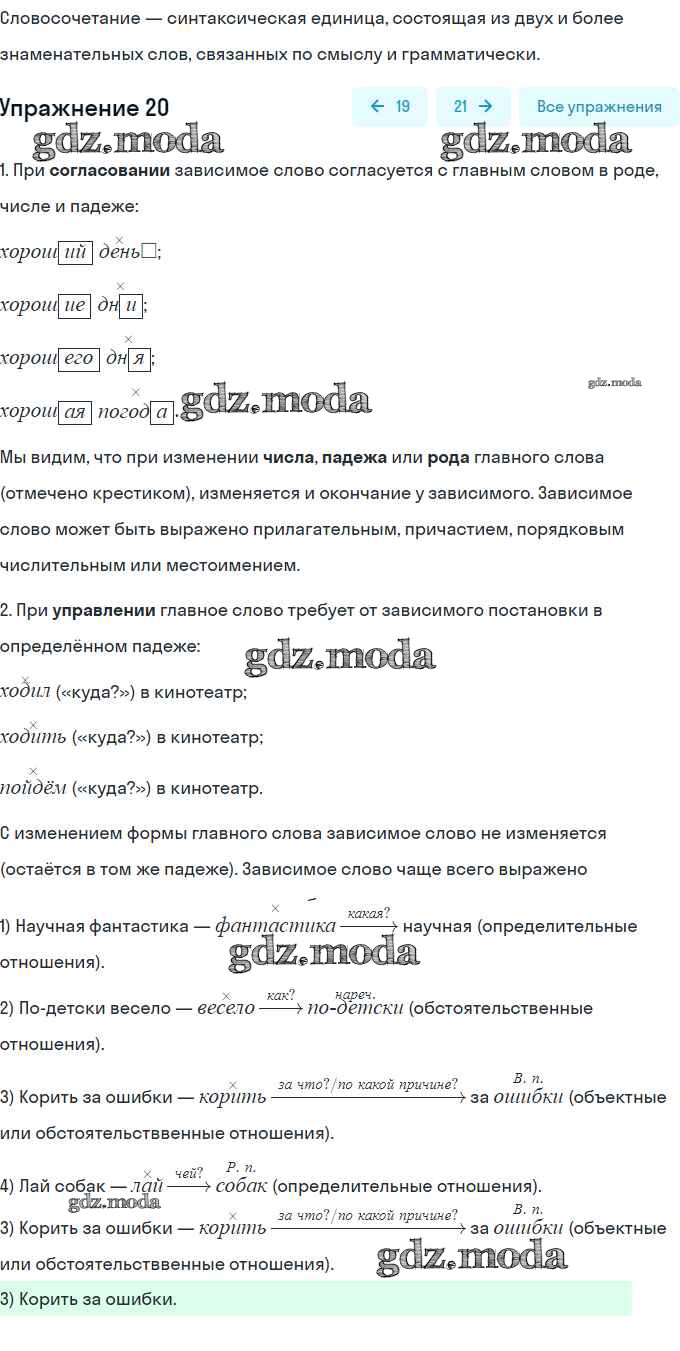 ГДЗ решение к заданию № 20 Русский язык 8 класс тесты, творческие работы, проекты Нарушевич А.Г. Просвещение 2020 ФГОС бесплатно на гдз.мода!