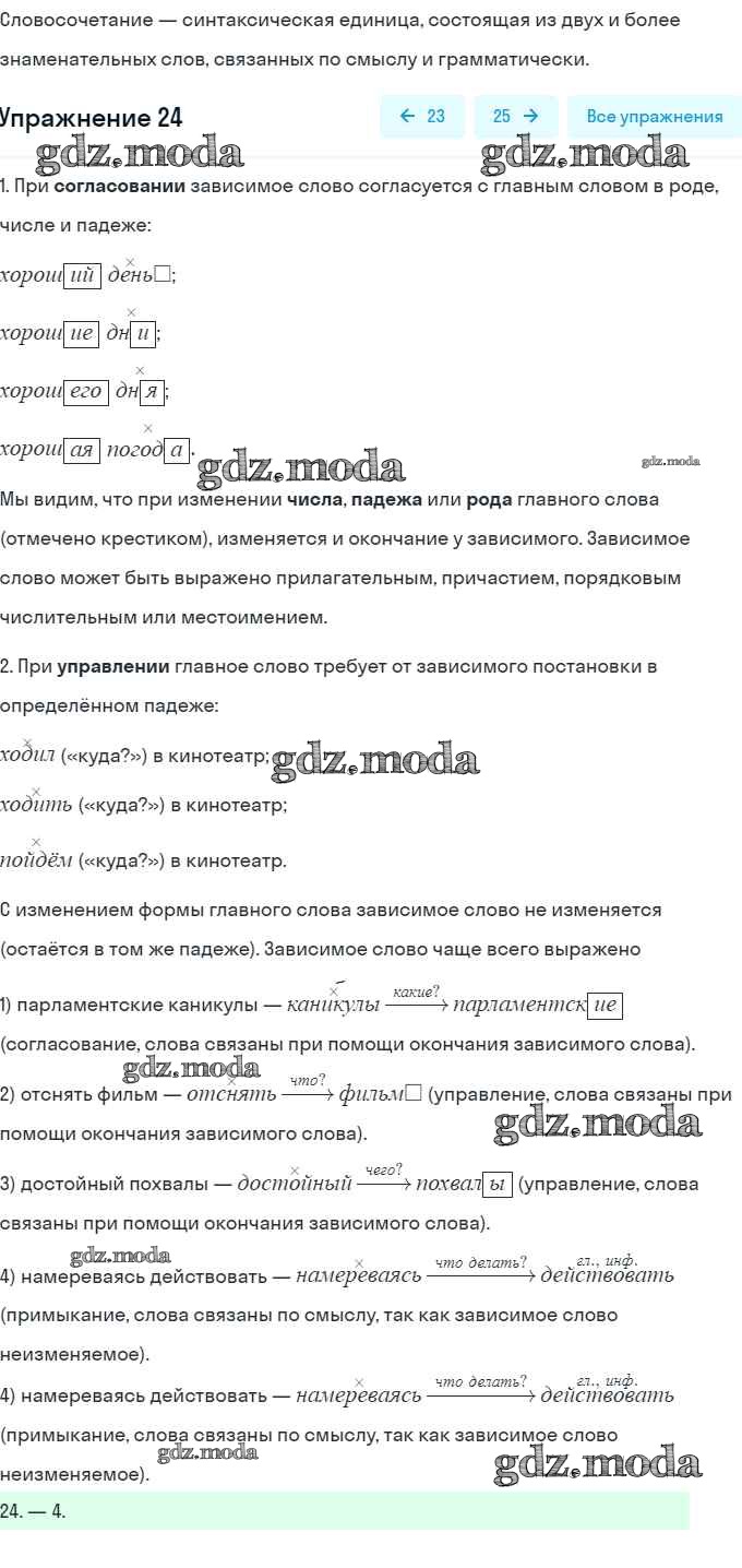 ГДЗ решение к заданию № 24 Русский язык 8 класс тесты, творческие работы, проекты Нарушевич А.Г. Просвещение 2020 ФГОС бесплатно на гдз.мода!