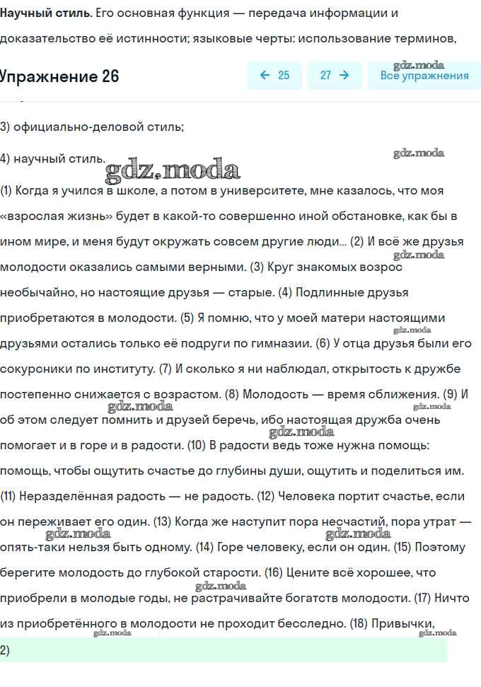ГДЗ решение к заданию № 26 Русский язык 8 класс тесты, творческие работы, проекты Нарушевич А.Г. Просвещение 2020 ФГОС бесплатно на гдз.мода!