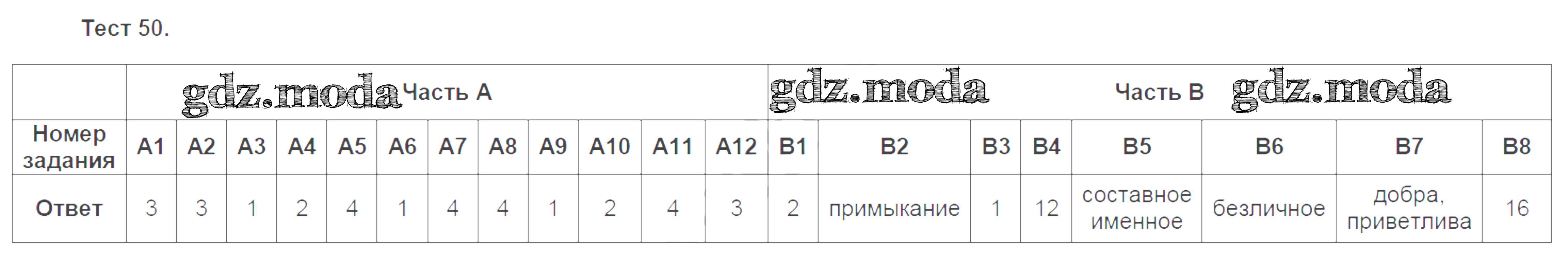 ГДЗ решение к заданию № №50 Русский язык 8 класс Тесты Груздева Е.Н. (к уч. Разумовской) Экзамен 2015 ФГОС бесплатно на гдз.мода!
