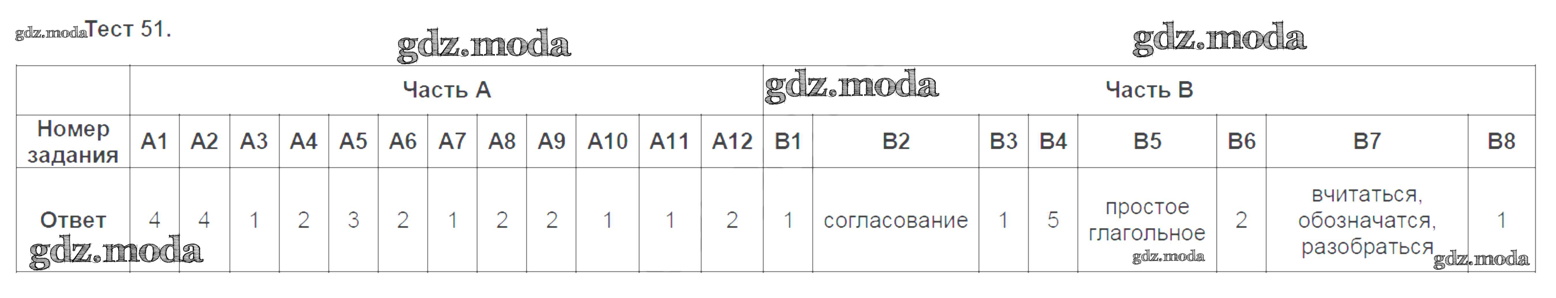 ГДЗ решение к заданию № №51 Русский язык 8 класс Тесты Груздева Е.Н. (к уч. Разумовской) Экзамен 2015 ФГОС бесплатно на гдз.мода!