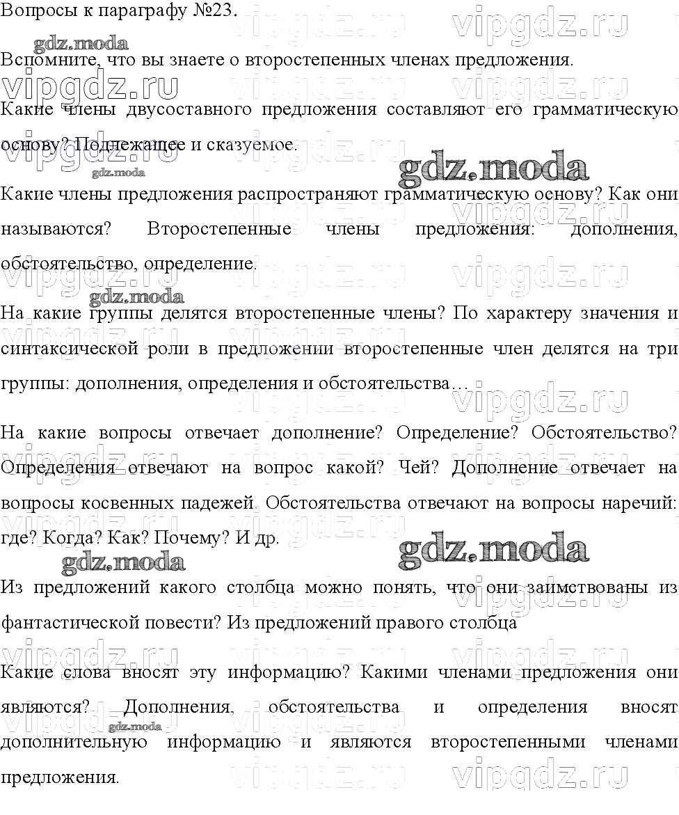 ГДЗ решение к заданию № §23 Русский язык 8 класс Тростенцова Л.А. Просвещение 2014 ФГОС бесплатно на гдз.мода!