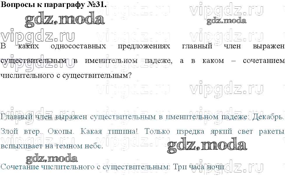 ГДЗ решение к заданию № §31 Русский язык 8 класс Тростенцова Л.А. Просвещение 2014 ФГОС бесплатно на гдз.мода!